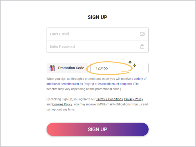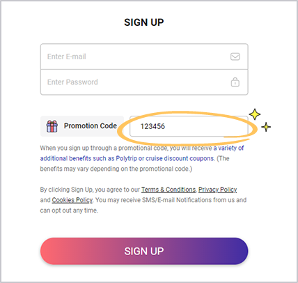 (The promotion code is the referrer’s POLYTRIPS ID number of referral friend)
