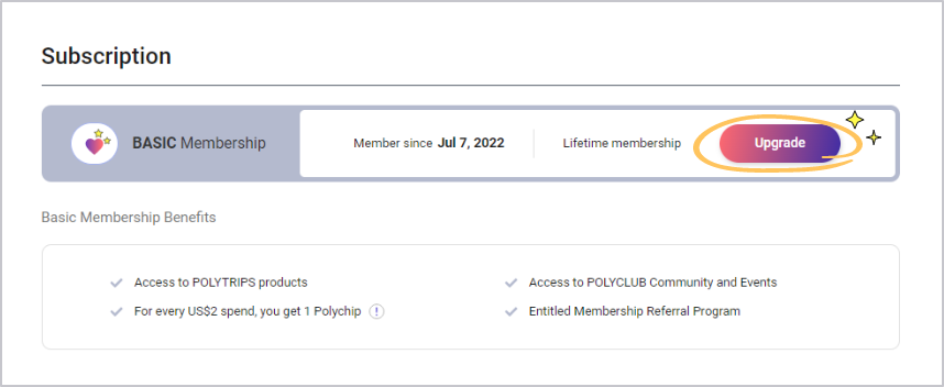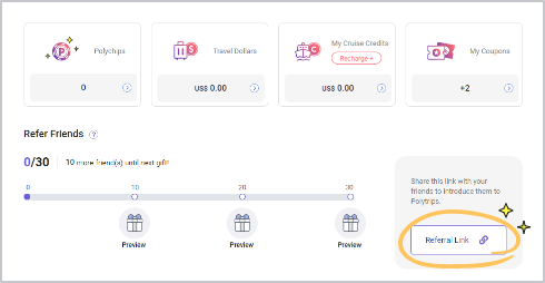 If your friends join POLYTRIPS via your promotion code and then upgrade to a VIP Membership, you will earn 500 Polychips.